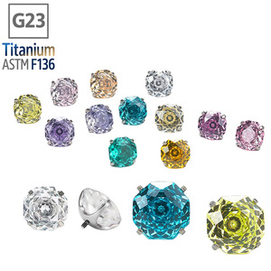 F136钛八边千禧玫瑰切锆石耳钉唇钉G23钛合金人体穿刺饰品耳骨钉