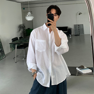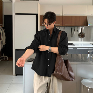 亚麻衬衫男士夏季薄款透气复古轻熟风长袖衬衣韩系休闲松弛感上衣