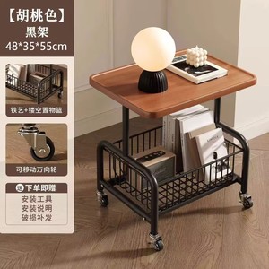 ミッドレトロスタイル無垢材コーヒーテーブルステンレス鋼ソファサイドテーブル寝室ベッドサイドテーブルリビングルーム可動収納ラック