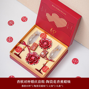 ハッピー・トールシャンパンペアカップラブギフトボックス(セラミックフラワーキャンドル)