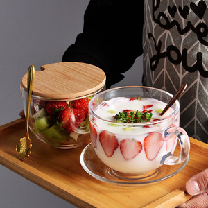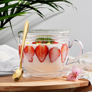 女子学生用大容量ウォーターカップ、マグカップ、ドリンクカップ、メンズ強化ガラスカップ、オートミールボウル、蓋付き朝食カップ、スプーン