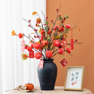 越境7果模造柿子リビングフラワーアレンジメント盆栽飾り新築祝い開店祝い新年ホームデコレーションフルーツ小道具