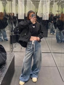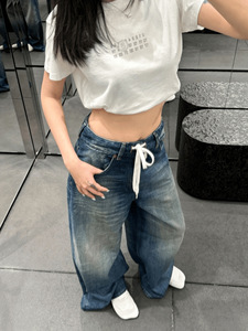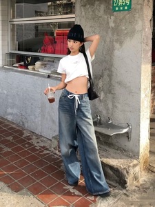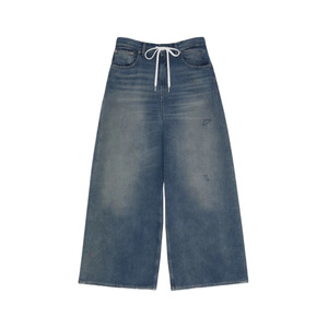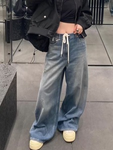 25SS YBオープン/ニッチデザインアメリカンスタイルのダメージ加工レトロウォッシュドドローストリングジーンズデザインから90% off