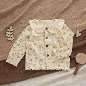 新生児春と秋の小さなコート女の赤ちゃん人形襟アウタートップ女の子外出カーディガン秋花柄