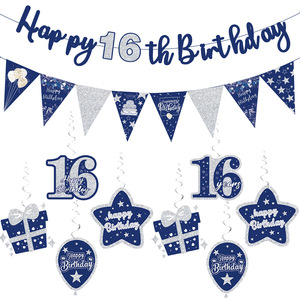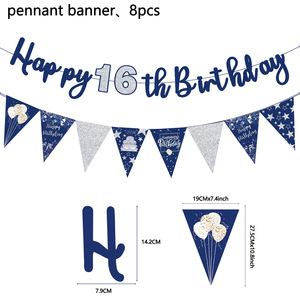 跨境16周岁21周岁主题生日场地布置横幅氛围装饰三角旗吊旋派对品