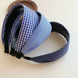 蓝灰色系格纹宽版发箍甜美清新牛仔蓝发卡包头外出日常百搭发卡