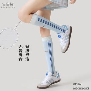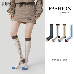 小腿袜子女秋冬拼色条纹无骨运动袜子瑜伽健身骑行压力显瘦长筒袜