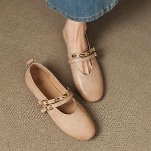 スーパーソフトノンスリップビーニーボトムトップレイヤー牛革リベットダブルブレストメリージェーン2025ラウンドトゥ本革ソフトソールシューズ女性用