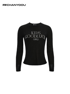 浅耀女装|美式复古珍珠烫钻长袖t恤女夏早秋修身薄款防晒罩衫上衣