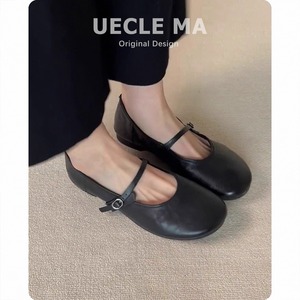 超软羊皮~平底单鞋女法式配裙子软底芭蕾鞋黑色通勤复古玛丽珍鞋