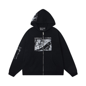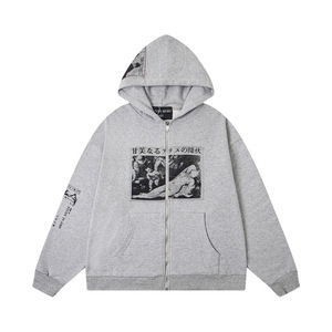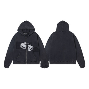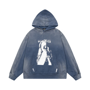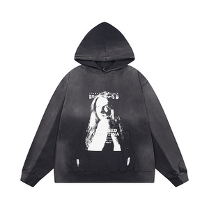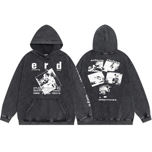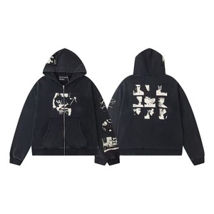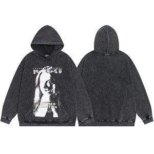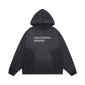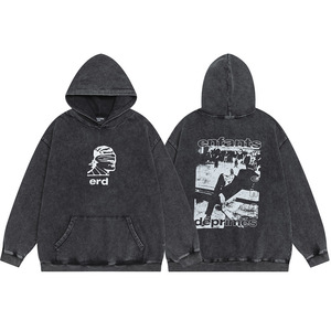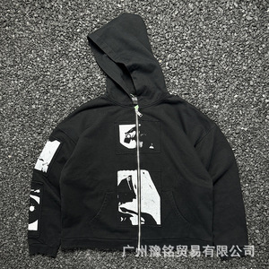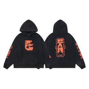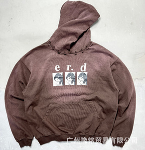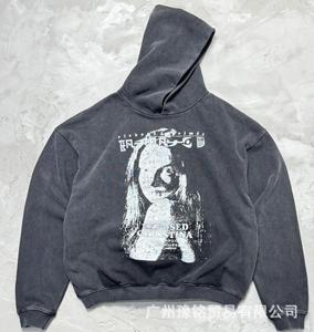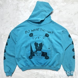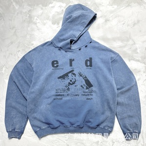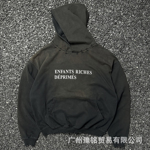 25新款美式高街忧郁富二代洗水做旧字母印花男女宽松休闲连帽卫衣