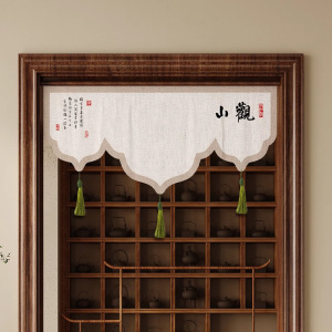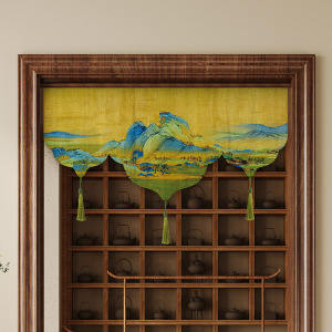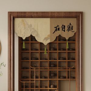 烹茶图-麻感门帘-单层重幔异形(短帘)