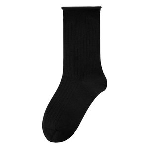 GOOD FA 2025秋冬新款棉质卷边宽坑条基础女士中筒袜子月子袜舒适
