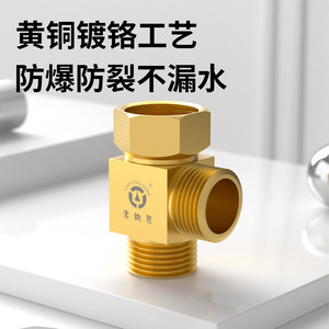 老铜匠三通分水阀活接全铜外接龙头带开关一进二出进水管4分角阀