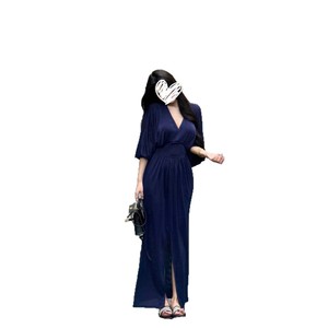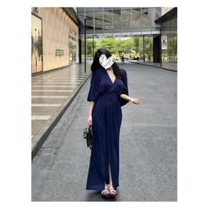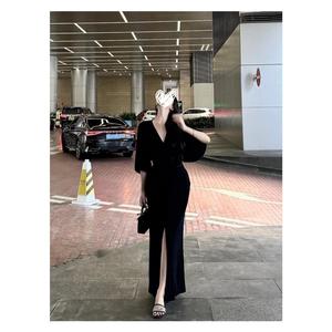 2025优秀的金蘑菇 御姐顶流/V领蓬蓬袖腰褶褶开叉高弹网纱连衣裙
