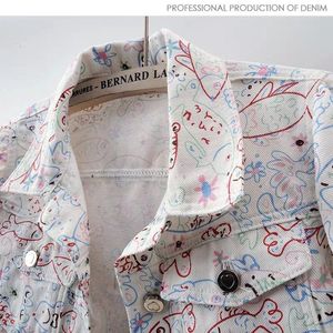 2025 夏の新韓国スタイル落書きプリント半袖デニムジャケット女性のショートカジュアルジャケットトップ薄型トレンディ