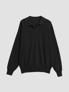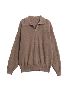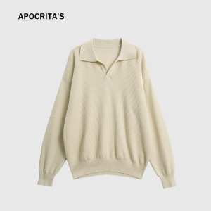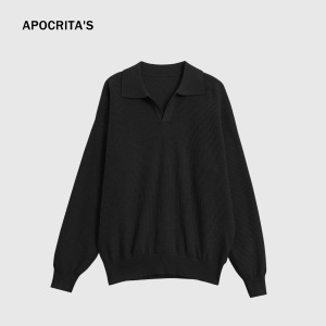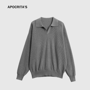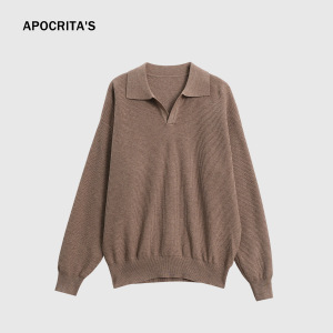 APO男装 |跨境秋冬毛衣男韩版宽松休闲翻领V领长袖内搭polo针织衫