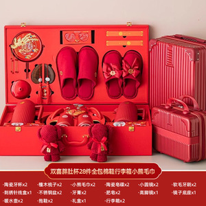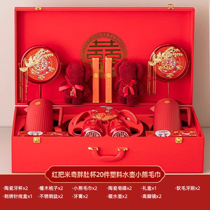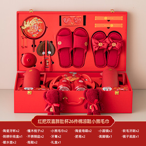 【大礼盒装】红把双喜胖肚杯26件棉凉鞋小熊毛巾