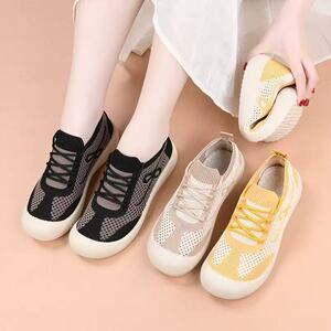 2025夏季新款休闲透气飞织网鞋时尚女鞋一脚蹬休闲鞋老北京布鞋