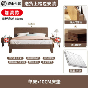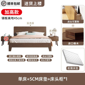 升级加高款胡桃色全实木床轻奢现代简约1.5米实木双人床1米8主卧