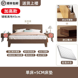 跨境加高FAS橡木床+5cm床垫+床头柜*1(包上楼+安装)