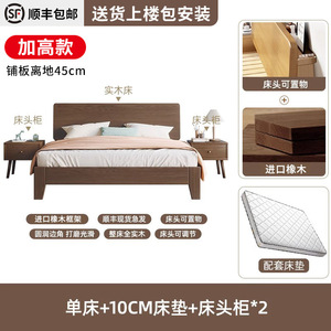 跨境加高FAS橡木床+10cm床垫+床头柜*2(包上楼)