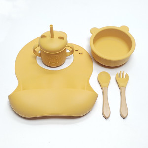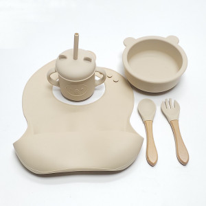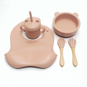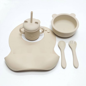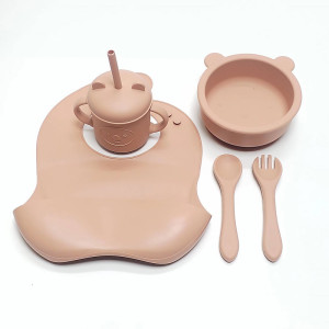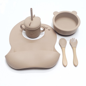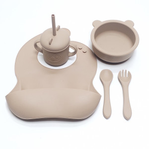 ライトブラウン(クマシリコンボウル+よだれかけ+カップ+フルシリコン+スプーン+フォーク)