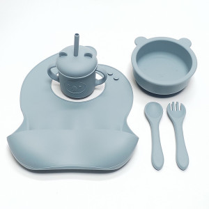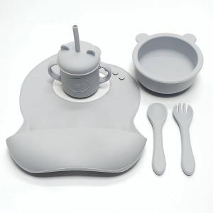シルバーグレー (リトルベアシリコンボウル+よだれかけ+カップ+フルシリコン+スプーン+フォーク)