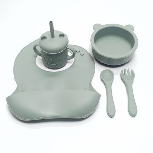 オリーブグリーン (リトルベアシリコンボウル+よだれかけ+カップ+フルシリコン+スプーン+フォーク)
