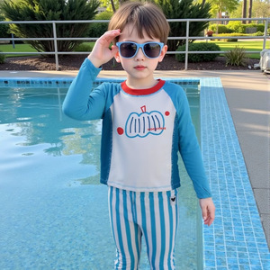 儿童泳衣男童防晒长袖长裤分体宝宝沙滩温泉游泳服运动必备游泳衣