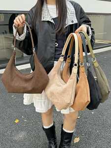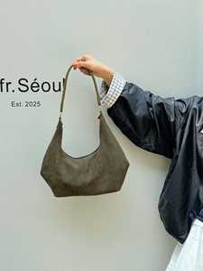 ニッチデザイン 2025 新しい女性のハンドバッグクロスボディバッグ通勤スエード半月脇の下バッグバゲットバッグ