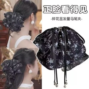 黑色蝴蝶印花飘带马尾夹女后脑勺半扎发抓夹气质轻奢百搭鲨鱼发夹