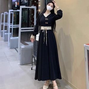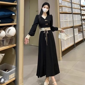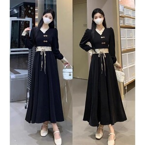 大码连衣裙女2025新中式秋冬胖mm复古国风裙子气质显瘦收腰打底裙