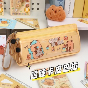 咔巴熊三角卡通笔袋一年级大容量前袋透明可视窗手提文具盒收纳