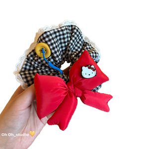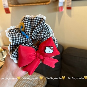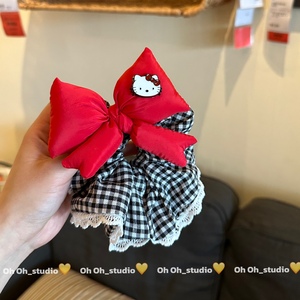 【oh oh】韩风学院少女显白红色格子大肠发圈甜美Kitty马尾发绳