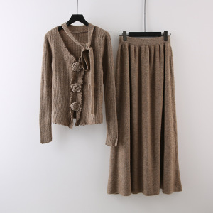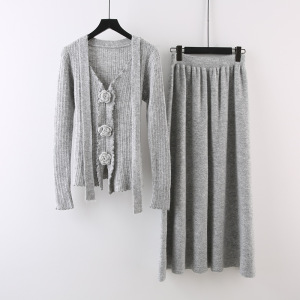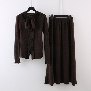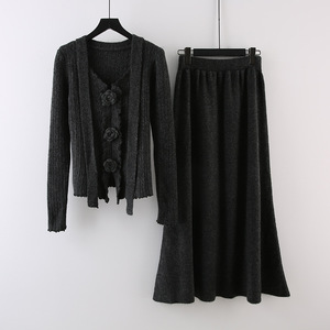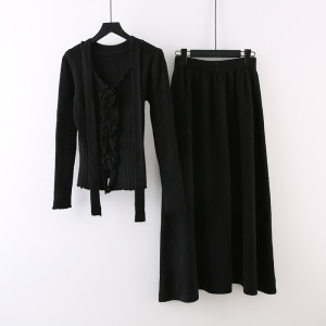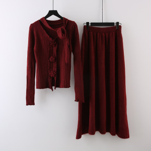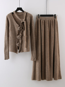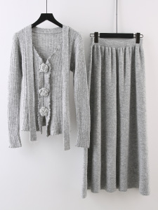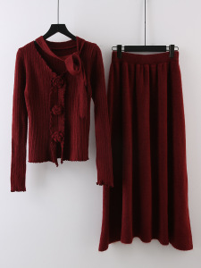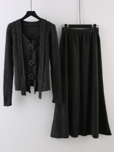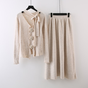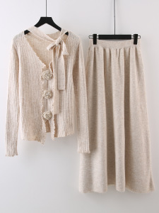 设计感立体花朵飘带长袖针织衫高腰显瘦半身裙女2025秋季时尚套装