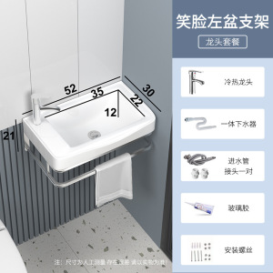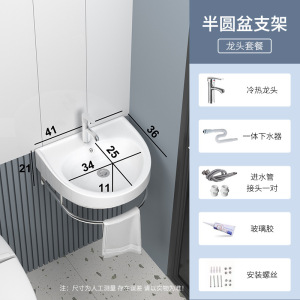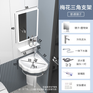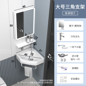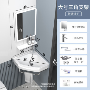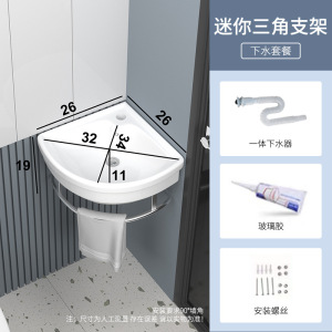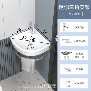 迷你小户型简易洗脸盆陶瓷 三角转角挂墙式不锈钢支架台阳洗手盆