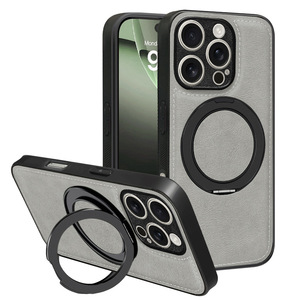 适用苹果17promax新手机壳iPhone16旋转自带支架360旋转无线皮革