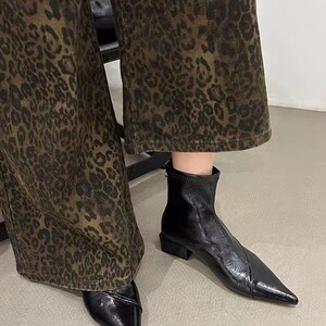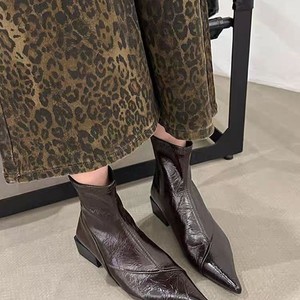 尖头小众瘦瘦靴2025秋冬新款靴子粗跟短筒女靴设计感马丁靴短靴女