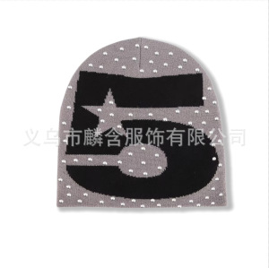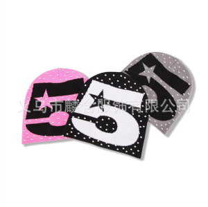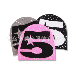 亚马逊新款针织帽跨境秋冬数字字母烫钻毛线帽百搭保暖帽厂家直销