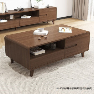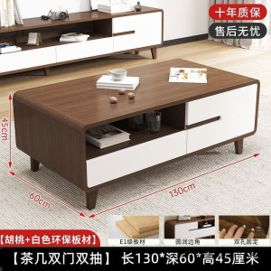 圆角茶几客厅小户型家用中式现代简约胡桃色原木色风茶几桌实木腿