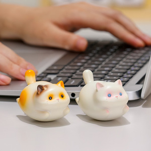福瑞猫猫乐悠悠解压玩具可爱小猫咪水晶原石好运摆件办公室装饰品