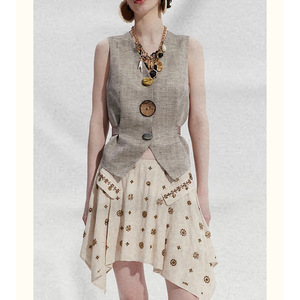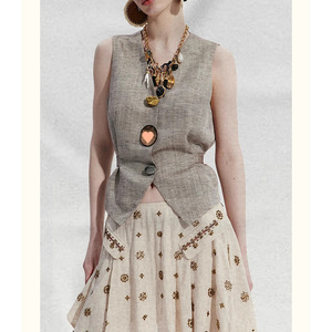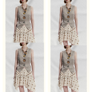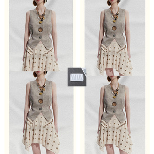 夏にぴったりの美しいスーツ、クールでサッカーなカジュアルな香りのトップスとスカートのツーピーススーツです。