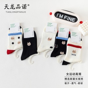 纯棉袜子女秋冬拉布布卡通动物高筒袜新疆棉防臭抗起球10a抑菌袜