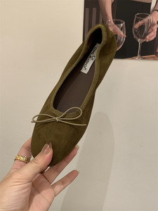 韩版早春新款浅口复古风小皮鞋低跟平底鞋蝴蝶结单鞋绒面奶奶鞋女