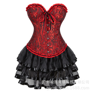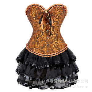 欧美宫廷塑身衣分体套装超短裙 简约收腹束胸女士束身衣 工厂批发