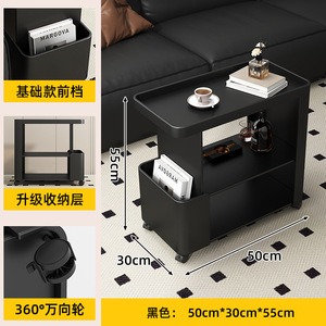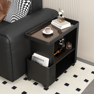 可移动茶几沙发边几侧边柜金属玻璃小推车带轮零食置物架床头边柜