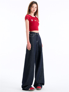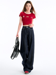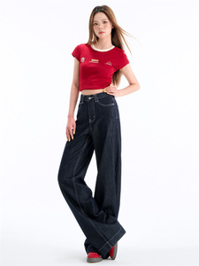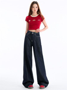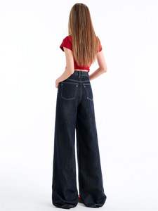 莱赛尔阔腿牛仔裤女2025年秋新款防掉色银线薄款宽松显瘦拖地裤