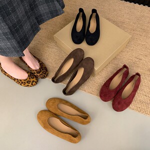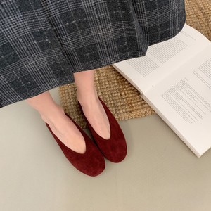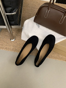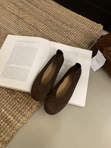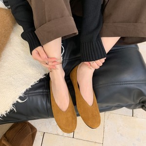 简约V口软面软底2025年新款复古休闲女鞋圆头平底浅口纯色单鞋