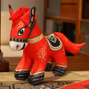 2026年马年吉祥物小马公仔毛绒玩具国风布艺生肖马属马玩偶布娃娃